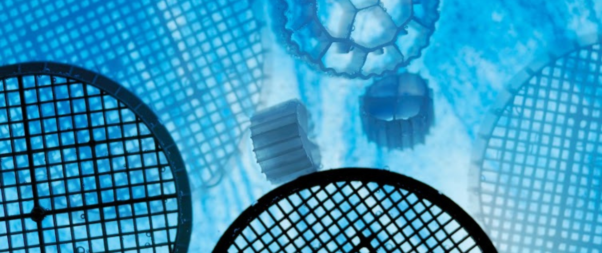 MBBR (Moving Bed Biofilm Reactor) treatment is a biological aerobic wastewater treatment process that utilises active nitrifying biofilm growing on carriers made from virgin or recycled High-density polyethylene (HDPE). Each of these carriers has a large surface area on which the bacteria can grow under optimal process conditions. Aeration ensures that the carriers are constantly kept in motion, allowing the bacteria to break down the organic material and the ammonia present in the wastewater.